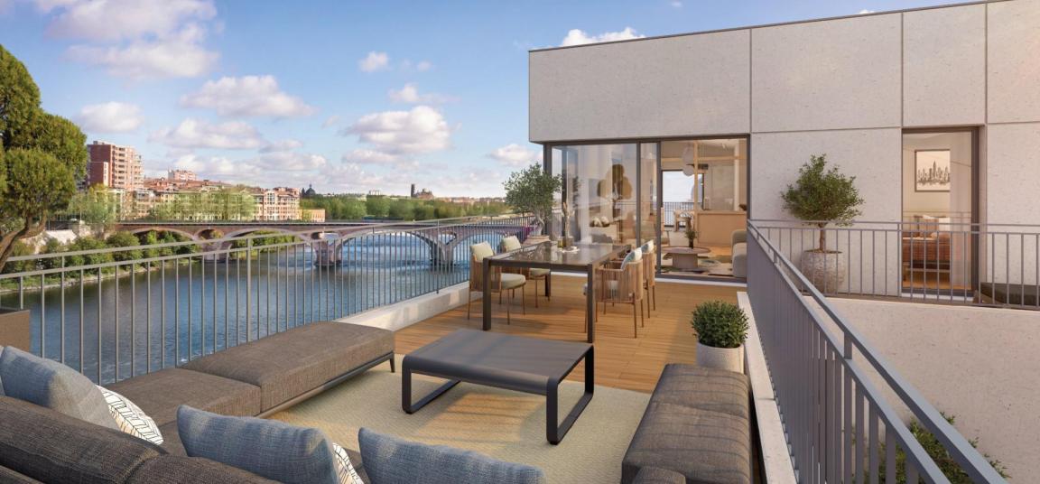 Cette résidence a été pensée pour ceux qui veulent vivre la ville autrement : à pied, à vélo, en douceur. Les longues promenades aménagées le long de la Garonne permettent de rejoindre en quelques minutes le Musée des Abattoirs, son parc, sa guinguette estivale et ses vues imprenables sur le Dôme de La Grave et le centre historique. Le matin, on part travailler à vélo ; le soir, on revient par les berges en évitant les embouteillages. Une nouvelle façon d’habiter Toulouse.